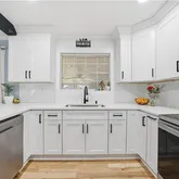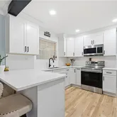 - Kitchen Features: Breakfast Bar, Cabinets White, Other Surface Counters, Solid Surface Counters