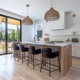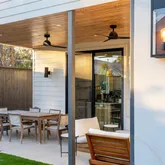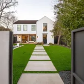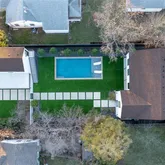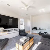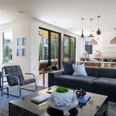 Architecturally striking modern home offering exceptional privacy and indoor-outdoor living. Behind a gated entry, a lush front lawn and resort-style saltwater pool create a dramatic first impression. Bright, soft finishes and clean modern lines fill the home with natural light, while expansive glass doors connect the main living areas to the outdoors.