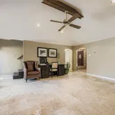 - Flooring: Carpet, Engineered Wood, Travertine Stone