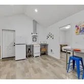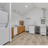 - Kitchen Room Additional Features: Free Standing Range, Free Standing Refrigerator, Laminate Flooring, Vaulted Ceiling