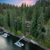 Rare Evernade Bay waterfront on Hayden Lake--just in time for summer! Enjoy 120 ft of deep-water, south-facing shoreline in a protected cove with stunning views, a private dock, and year-round access just minutes from town. Conveniently located near golf, dining, skiing, and just minutes from the trails at English Point Rec Area! This beautifully crafted home features vaulted knotty pine ceilings, blue pine trim, skylights, and a striking rock fireplace. The gourmet kitchen is perfect for entertaining,...Rare Evernade Bay waterfront on Hayden Lake--just in time for summer! Enjoy 120 ft of deep-water, south-facing shoreline in a protected cove with stunning views, a private dock, and year-round access just minutes from town. Conveniently located near golf, dining, skiing, and just minutes from the trails at English Point Rec Area! This beautifully crafted home features vaulted knotty pine ceilings, blue pine trim, skylights, and a striking rock fireplace. The gourmet kitchen is perfect for entertaining, with cherry cabinetry, granite countertops, a Monogram gas range, and a Viking refrigerator. The luxurious primary suite offers a copper soaking tub, heated floors, a cozy fireplace, and a private balcony. Take in spectacular waterfront views from multiple decks, which invite you to unwind- creating an ultimate daily retreat. Freshly treated & stained cedar siding paired with the metal roof to keep the maintenance carefree, allowing you to relax instead and enjoy this everyday escape!