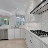 ...Incredible, move-in ready 2-story / 4 BD / 5 BA estate home with sweeping water and golf views. Gorgeous and newly renovated kitchen with quartz countertops, gas stove, and double ovens. All en-suite bedrooms. Every bedroom on first floor has hardwood floors.