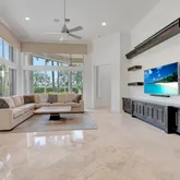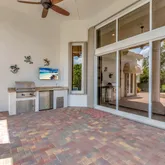 In the backyard you will find breathtaking golf and water views, a full summer kitchen, heated pool & spa, and an excess of patio space with a remote-controlled Armor screen. Additional upgrades include: under stair storage; accordion shutters; impact front door; whole house generator; and 3-car garage with built-ins.