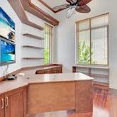The first floor has amazing flow. It features: an office with extra-high ceilings and built ins; en-suite guest room; a dining room with service entry to the kitchen; a family room and breakfast nook with fantastic views; the primary suite with a large walk-in closet, luxurious primary bath, and entry to the backyard.