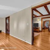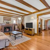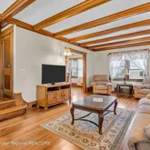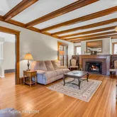 - Living Room: Ceilings - Beamed, French Doors, Floor - Wood Floor, Dec Molding, Built-Ins