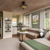 The detached guest studio features a kitchen, full bath and private lanai, providing further optionality for guests or multigenerational living.