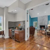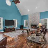 - Great/Family Room: Built-Ins, TRY/VLT/CATH, Sunken, French Doors, Fireplace - Woodburning, Floor - Wood