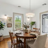 - RoomDescription 1: Dining Room. Kitchen, Living Room, Bedroom, Bedroom, Bathroom with Laundry