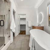 - Room Bathroom Features: Soaking Tub, Shower in Tub, Walk-in shower, Main Floor Full Bath, Separate tub and shower, Double sinks in bath(s), Dual shower heads (or Multiple), Privacy toilet door, Double Sinks in Primary Bath, Shower