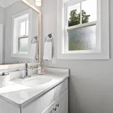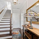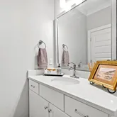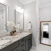 This home includes three fufll bathrooms and one half bath, each designed with comfort and luxury in mind. The primary bathroom offers a spa-like experience with a spacious walk-in shower, elegant fixtures, and premium finishes.