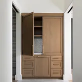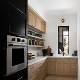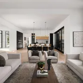 The chef's kitchen is outfitted with Wolf appliances and a generous island, complemented by a butler's pantry that provides additional storage and convenience— ideal for both everyday living and large-scale entertaining.