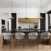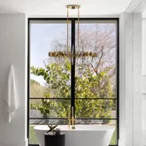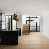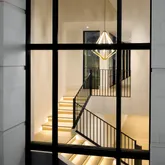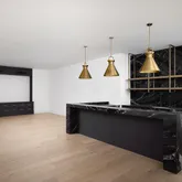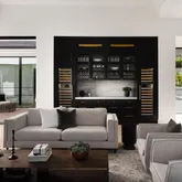 The lower level is a showpiece in its own right, anchored by a dramatic light well that floods the space with natural light. This level offers a lounge, custom bar, and theater roomall accessible by a private elevator.