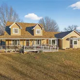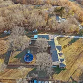 Welcome to 6513 E. Ryan Road, Blue Springs, MO, a unique and spacious home offering 8 bedrooms, 5 full bathrooms, and 1 half bathrooms. This one-of-a-kind property is essentially two full homes connected by a garage, providing exceptional flexibility for multi-generational living, large families, or shared households. Situated on a scenic, private lot, the home features expansive living areas, vaulted ceilings, wood floors, and abundant natural light. The aerial views showcase the impressive footprint and peaceful surroundings. Listed below appraised value, this property presents an outstanding opportunity for space, versatility, and built-in equity.
