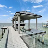Welcome to 6526 Surfside Blvd, Apollo Beach’s most iconic waterfront estate—designed for those who want room to live, entertain, work, and grow. With over 12,700 square feet of living space and nearly 3,000 additional square feet of climate-controlled storage, this custom-built, hurricane-rated home delivers unmatched flexibility and performance, inside and out. Built on over 12 feet of elevation, with stem wall and solid block construction, this property offers both peace of mind and future-proof design. From the moment you arrive, the gated entry, oversized paver driveway, and lush tropical landscaping set the tone. The private dock offers direct Tampa Bay access for boating, paddleboarding, or fishing from your backyard. Retractable full corner-pocket sliders on both levels open the entire home to panoramic views of the Bay. Views of Tampa to the right and St Pete to the left while capturing stunning sunrises, breezes, and sunsets. This home is as smart as it is spacious, with energy-efficient insulation, hurricane-rated noise-reduction windows and doors, a hardwired internal/external security system, seamless fire-rated hardware, and solar-powered design. The outdoor kitchen includes a retractable TV, gas grill, and custom lighting—perfect for weekend cookouts or hosting under the stars. Inside, there are 7 full-size bedrooms and 8 bathrooms, plus a mix of flexible-use spaces: media room, home office, in-law suites, lounges, or additional guest quarters—whatever your needs, this home adapts. The main kitchen is built to host, with a massive island, gas cooktop, double ovens, butler’s pantry, freezer, wine fridge, and high-end appliances throughout. A formal dining space with a built-in wine wall creates a showpiece moment for dinners and entertaining. The primary suite is located on the main floor with bay views, private pool access, a serene sitting area, and a spa-inspired bath featuring a jetted tub, walk-in rain shower, dual vanities with built in smart screen, and a custom closet with center island and dressing area. Two secondary bedrooms also provide private ensuite bathrooms. Additional bedrooms upstairs are spacious, modern, and share access to expansive wraparound balconies with glass railing and glass floor panels for a dramatic look down to the outdoor living space. Other standout features include: