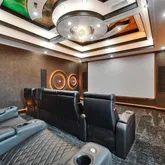 Custom home theater with recliners for 10, full surround sound, and projector