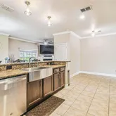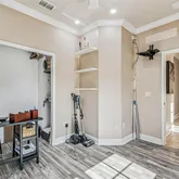 - Interior Features: Built-in Features, Ceiling Fan(s), Crown Molding, Eating Space In Kitchen, Elevator, High Ceilings, Kitchen/Family Room Combo, PrimaryBedroom Upstairs, Solid Wood Cabinets, Split Bedroom, Stone Counters, Thermostat, Walk-In Closet(s)