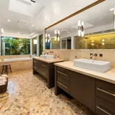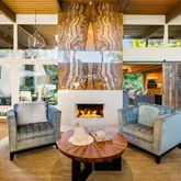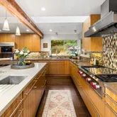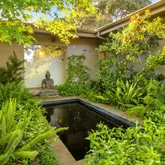 Tucked behind gates on a peaceful lane, this single-level Mid-Century estate is a tranquil sanctuary where nature and luxury converge. Lush tropical landscaping, curated pathways, and serene outdoor moments create a resort-like atmosphere. Inside, soaring ceilings and walls of glass frame garden views, while a chef's kitchen, dramatic agate fireplace, and seamless indoor-outdoor flow elevate everyday living. The spa-inspired primary suite features radiant...A Private Zen Retreat in the Heart of Montecito