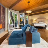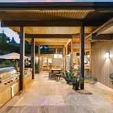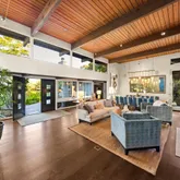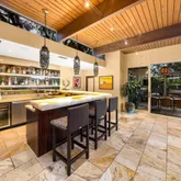 Tucked behind gates on a peaceful lane, this single-level Mid-Century estate is a tranquil sanctuary where nature and luxury converge. Lush tropical landscaping, curated pathways, and serene outdoor moments create a resort-like atmosphere. Inside, soaring ceilings and walls of glass frame garden views, while a chef's kitchen, dramatic agate fireplace, and seamless indoor-outdoor flow elevate everyday living. The spa-inspired primary suite features radiant heated floors, steam shower, ceiling-fill soaking tub, and private garden with hot tub and outdoor shower. Two additional en-suite bedrooms and two offices offer flexibility and comfort. A sparkling pool, modern cabana with bar and home theatre, outdoor kitchen, tennis court, and smart