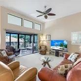 Available off season - This upscale condo offers 3 bedrooms 2 baths. Step inside to discover soaring ceilings, custom cabinetry, Floor-to-ceiling glass sliders invite natural light and lead to a spacious private lanai—perfect for entertaining.