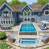 Absolutely stunning, zen-like property tucked away at the top of a ridge. Soaring cathedral ceilinged Great Room offers front-to-back views through an unbelievable array of windows. Natural light floods the home from all sides creating a resort-like experience, while an infinity pool dazzles as the focus of the rear courtyard. While impressive, the home's relaxed ambiance is comfortable and welcoming. The Great Room incl an impressive stone fireplace & a spectacular architectural ceiling. The state-of-the-art...Absolutely stunning, zen-like property tucked away at the top of a ridge. Soaring cathedral ceilinged Great Room offers front-to-back views through an unbelievable array of windows. Natural light floods the home from all sides creating a resort-like experience, while an infinity pool dazzles as the focus of the rear courtyard. While impressive, the home's relaxed ambiance is comfortable and welcoming. The Great Room incl an impressive stone fireplace & a spectacular architectural ceiling. The state-of-the-art Kitchen wows w/elegant black cabinetry, brass hardware, a large stone-topped centre island, Viking stainless steel appliances & a breakfast room surrounded by windows overlooking mature trees. An adjoining Sunroom provides the perfect place for a Home Office or for relaxing. A Guest Suite including a full bath rounds out this floor along w/an accompanying powder & laundry room. Upstairs, the 2 wings are connected by an interior balcony overlooking the courtyard. All BRs feature vaulted ceilings. The Primary BR incl a dressing room, zen-like bath w/double stone vessel sinks & a steam shower. Lower level includes a gym, media room w/full bar & a sauna room complete w/natural rock-wall open shower! Outside, the heated, gunite infinity pool joins a spa & gas fire pit, pool house w/full bath, changing area, outdoor shower & complete outdoor kitchen. Truly an entertainers paradise! There is also a koi pond & waterfall. An inspiring property!