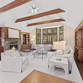 - Room Features: Vaulted Ceiling,Beams,Book Shelves,Built-Ins,Ceiling Fan,Fireplace