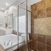 - Interior Features: Breakfast Bar, Granite Counters, High Ceilings, Kitchen Family Room Combo, Pantry, Soaking Tub, Separate Shower, Tub Shower, Window Treatments, Ceiling Fans, Programmable Thermostat