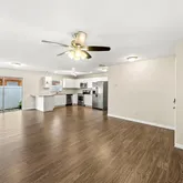 - Interior Features: Ceiling Fan(s), Kitchen/Family Room Combo, Open Floorplan, Primary Bedroom Main Floor, Solid Surface Counters