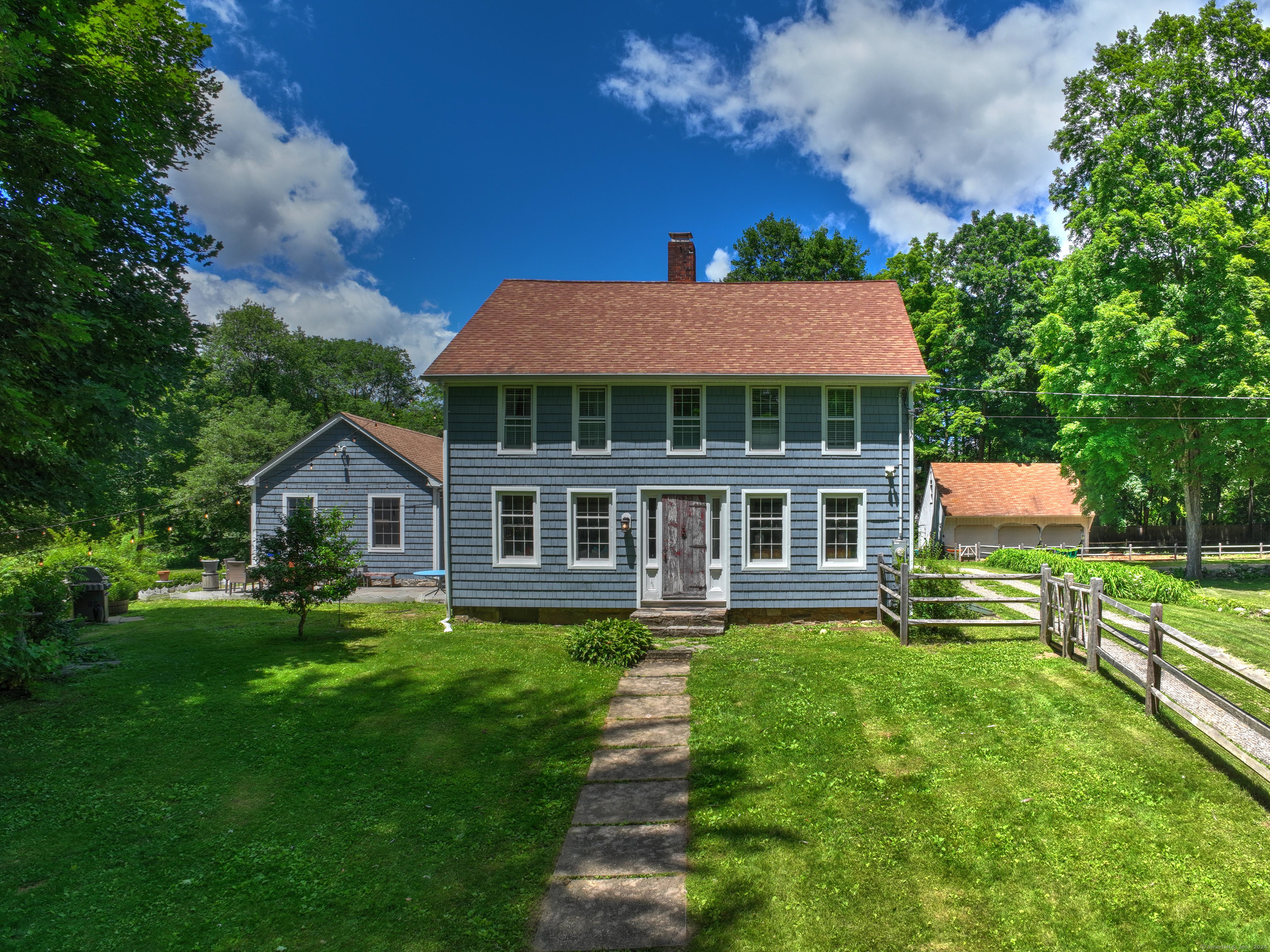 Welcome to this picturesque, Colonial Farmhouse built in 1740 and completely renovated & expanded by the current owners in 2017. As one of the oldest homes in Redding, it boasts original exposed beams while offering a fully updated living experience. Now spanning 3432 sq ft, this home features 5 BRs & 4 full baths, including a gorgeous kitchen with heated floors, marble counters, a Wolf gas range & Thermador fridge. Ascend the staircase to find the convenience of an upstairs laundry & a spacious...Welcome to this picturesque, Colonial Farmhouse built in 1740 and completely renovated & expanded by the current owners in 2017. As one of the oldest homes in Redding, it boasts original exposed beams while offering a fully updated living experience. Now spanning 3432 sq ft, this home features 5 BRs & 4 full baths, including a gorgeous kitchen with heated floors, marble counters, a Wolf gas range & Thermador fridge. Ascend the staircase to find the convenience of an upstairs laundry & a spacious primary suite with a full bath also with heated floors, tub, separate shower & double vanity. Two more bedrooms & a full bath on this floor. Ground Floor in-law suite complete with a bedroom, living room (or addl. BR), & full bath. Situated on 2.76 acres and set back from the road, the property includes a bluestone patio overlooking the stream-fed pond that's perfect for waterfowl and other animals, peach and apricot trees & a horse paddock for equestrian enthusiasts. Adding to the allure, a newer detached 3-car garage or barn provides ample space for vehicles or hobbies or even additional livestock! Surrounded by picturesque landscapes, this home offers a beautiful and idyllic setting for those seeking a blend of history & modern comfort. Don't miss the opportunity to own a piece of Redding's rich heritage in this captivating farmhouse. Less than a mile from (West) Redding Train Station. 69 Miles to Midtown