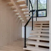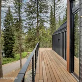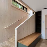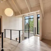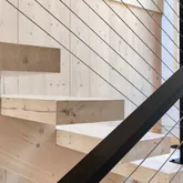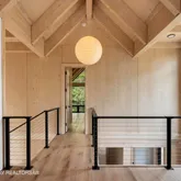 Constructed with spruce Cross-Laminated Mass Timber (CLT)—precision-engineered in Austria—this home embraces next-generation green building practices, significantly reducing carbon footprint while enhancing structural integrity and thermal performance. The exterior is wrapped in striking Shou Sugi Ban siding, crafted from Australian Yellow Balau —a naturally fire-resistant hardwood.