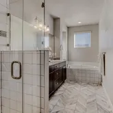 - Room Description: Well-appointed ensuite bathroom featuring a soaking tub, private water closet, and a spacious walk-in closet