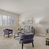 - Room Description: Spacious room featuring a custom fireplace and large windows accented with custom shutters.