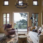 - Living Room Features: Deck Attached, Great Room, Open Beam Ceiling, View