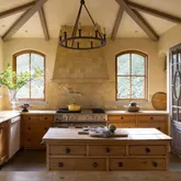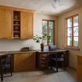- Kitchen Features: Island, Other Counter, Pantry Cabinet, Synthetic Counter, Wood Counter
