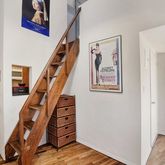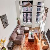 This bright and airy home beckons you inside with breathtaking 13-foot ceilings and extra-tall arched windows. Flooded with southern light, the double-height living room invites quiet relaxation or lively entertaining surrounded with expansive art walls for your growing collection. The well-planned kitchen is filled with cherry cabinets and great appliances, including a gas range, built-in microwave and dishwasher, and the nearby dining area provides the perfect spot for a table and chairs. The well-appointed bathroom is flanked by two extra-large closets and features lovely tilework and a big tub-shower. Head upstairs to find a roomy sleeping loft that puts the ornate top of an original Corinthian cast-iron column at eye-level — a view rarely enjoyed in historic homes. Open to the living room below, this serene space provides room for a bed and sitting area as well as access to an unbelievable 87-square-foot storage area.