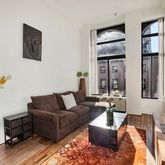 This bright and airy home beckons you inside with breathtaking 13-foot ceilings and extra-tall arched windows. Flooded with southern light, the double-height living room invites quiet relaxation or lively entertaining surrounded with expansive art walls for your growing collection. The well-planned kitchen is filled with cherry cabinets...Welcome to a perfect one-bedroom, one-bathroom home, where stunning architectural details and phenomenal storage meet in a friendly Greenwich Village co-op building.
