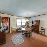 - RoomDescription 1: Entry foyer, eat in kitchen, living room with woodburning stove, den with fireplace, bedroom, Primary bedroom, formal dining room, Full bath. Storage attic above one car attached garage.