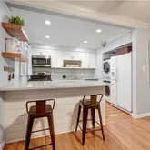 - Kitchen Features: Breakfast Bar, Cabinets White, Stone Counters