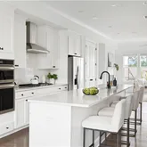 - Kitchen Features: Cabinets White, Kitchen Island, Pantry, Stone Counters, View to Family Room