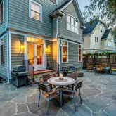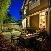 Entertaining is a breeze and maintenance a pleasure in the fenced backyard, which offers a private oasis with gorgeous landscaping, including fire pit, flagstone patio, blooming plantings and mature trees, guests are delighted to enjoy dining and mingling both inside and out.