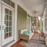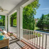 A warm, inviting covered front porch ushers guests into the dedicated foyer, which leads to the formal living room and the elegant dining room, each with balcony access. The stunning, state-of-the-art gourmet kitchen is highlighted by a gorgeous center island and a sun-filled breakfast area, which connects to the spacious family room adorned with sandstone fireplace. French doors open onto the back patio, complete with a natural gas firepit, outdoor speaker system, and a BBQ-ready connection in this lush fenced-in rear yard with minimal maintenance. Wine storage, a walk-in pantry, and a lovely powder room all add to the ideal entertaining and everyday living spaces.