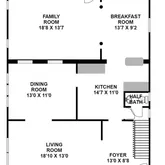 - Room List: Living Room, Dining Room, Bedroom 2, Bedroom 3, Kitchen, Family Room, Bedroom 1, Laundry, Bathroom 1, Bathroom 2, Half Bath