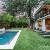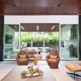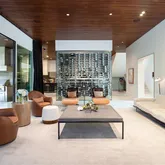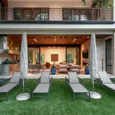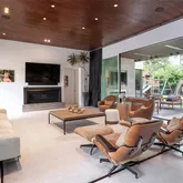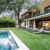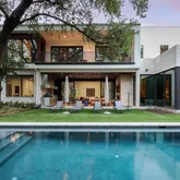 ft wide La Cantina sliding doors open for effortless indoors to outdoors entertaining and flow. A stunning four-sided 1200+ bottle glass wine gallery anchors the dining and kitchen, featuring Bulthaup cabinetry, Gaggenau appliances, and a walk-in pantry with temperature-controlled storage. The first-floor primary suite offers a limestone spa-inspired bath, walk in shower + soaking tub, dual closets with tornado room, and private glass walled executive office overlooking the manicured rear yard. Outdoors, enjoy a resort-style pool with slide and chiller, putting green, turf lawn, mosquito misting system, and a covered pavilion with outdoor kitchen, drop-down screens, cooling misting, and heaters. Upstairs includes four sophisticated ensuite bedrooms, a tv-media lounge with wet bar, fitness studio and powder bath with both living spaces connected to a tree house view terrace. Savant whole-home AV, electronic shades, WiFi 6, security, generator, elevator, walk out conditioned mechanical room, and whole-house systems complete this exceptional offering on a premier 100x160 lot.