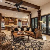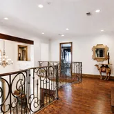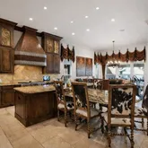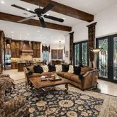 A grand stone staircase with wrought iron railing welcomes you, set against floors of Turkish travertine. Exposed firewood beams painstakingly stained to perfection. The quality is so extraordinary that two cranes broke during installation. Throughout the home, hand-scraped oak floors, multiple marble fireplaces crowned with elegant molding, and plantation shutters elevate every space. The living room boasts gorgeous iron French doors that open to a sprawling outdoor...Step into this extraordinary home