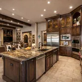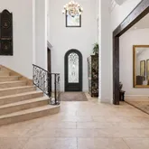 - Flooring: Hardwood, Travertine Stone