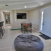 1 Single Family home split as a 3-bedroom two bath house with walk in showers plus a 2-bedroom one bath apartment. All tile floors. Apartment: Laminate hardwood floors