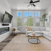 - Interior Features: Ceiling Fan(s), Eat-in Kitchen, High Ceilings, Kitchen Island, Open Floorplan, Pantry, Primary Suite, Quartz Counters, Walk-In Closet(s)
