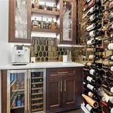Enjoy a convenient front entry that opens directly into a bright main living area with hardwood floors, high ceilings, a custom marble fireplace, and built-ins. The home features a custom-built wine cellar, mudroom drop zone, upgraded powder room, and beautifully designed laundry room, and custom primary closet. It’s also elevator-ready on all three levels.
