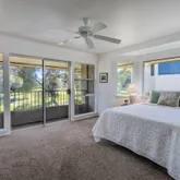 Paniolo Greens G201 in Waikoloa Village is an end unit with windows on 3 sides, ocean view with sunsets on one side and a beautiful view of #4 tee box and fairway on another.