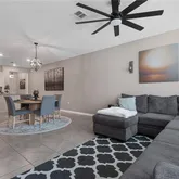 - Interior Features: Ceiling Fan(s), High Ceilings, Kitchen/Family Room Combo, Living Room/Dining Room Combo, PrimaryBedroom Upstairs, Solid Surface Counters, Thermostat, Walk-In Closet(s)