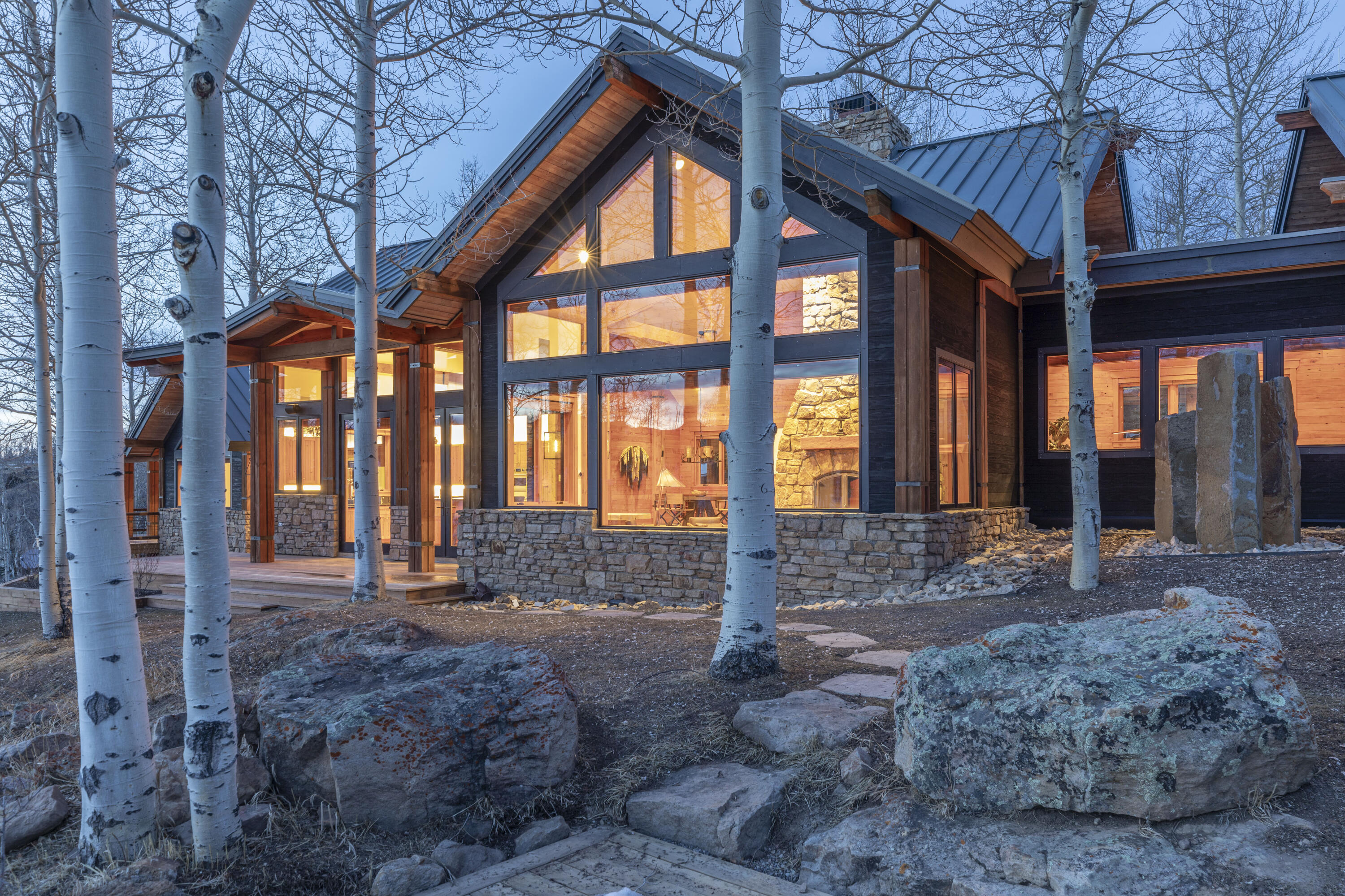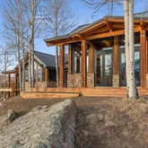 - Exterior Finish: Stone, Wood (Natural)
